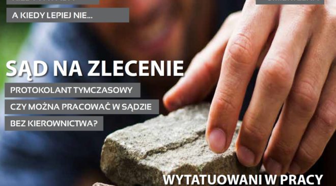 Gazeta Sądowa – Nr 4(21) kwiecień 2018 Zapraszamy do lektury numeru, a w nim m.in.: Moje biuro to auto, telefon i laptop – wywiad z Edytą Odyjas Będą kontrole PIP w sądach Zatrudnianie i wynagradzanie informatyków w sądach po planowanych zmianach Dyrektor i prezes powinni odpowiadać na pisma pracowników „S” wygrała w WSA: kurator okręgowa nie dostanie informacji o kuratorach zrzeszonych w związku zawodowym Problemy z etatami w sądach –…