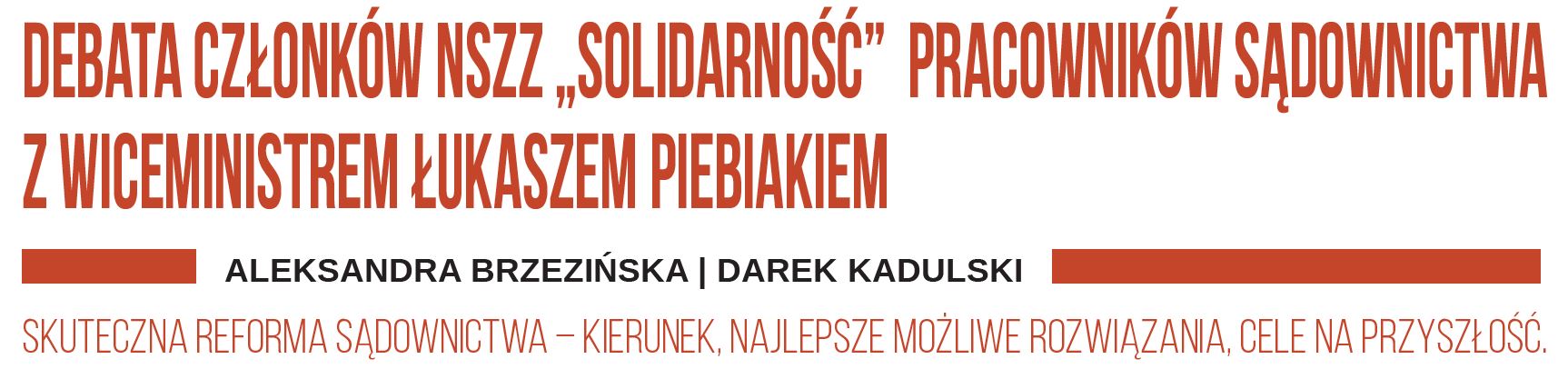 W czasie odbywającego się w Gdańsku VIII Zjazdu Koordynatorów NSZZ „Solidarność” Pracowników Sądownictwa 17 marca odbyła się debata zatytułowana: Skuteczna reforma sądownictwa – kierunek, najlepsze możliwe rozwiązania, cele na przyszłość. W debacie z działaczami związkowymi uczestniczył Podsekretarz Stanu w Ministerstwie Sprawiedliwości, Łukasz Piebiak oraz zaproszeni goście. Wiceminister znalazł się w krzyżowym ogniu pytań stu pracowników sądów.